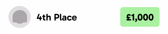 There's a total of £50,000 in cash prizes. 1st place wins £25,000, 2nd place wins £15,000, and 3rd place wins £5,000. On top of that, 5 additional participants will each receive £1,000.